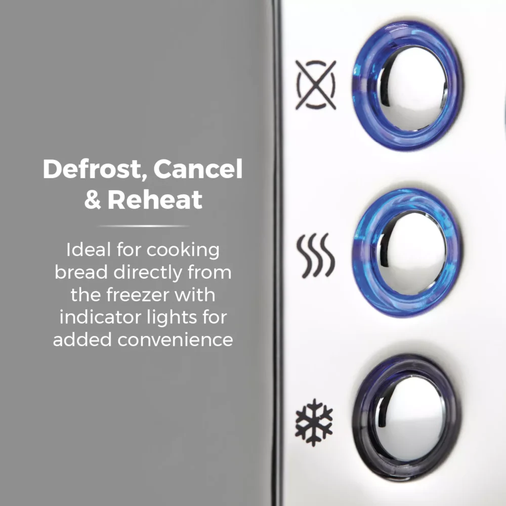 This Ash 2-Slice Toaster brings contemporary style to your kitchen with its sleek grey and chrome body and premium matte finish. It features modern design and functionality to make family breakfasts simple, providing 7 different browning levels to create the perfectly-toasted consistency for your bread. A self-centering function keeps each slice aligned inside the slot to ensure even toasting on both sides of the bread. There are defrost and reheat options to toast directly from frozen, or warm up forgotten slices to take the stress out of your morning schedule. A removable tray lets you easily clear out messy crumbs, while the integrated cord storage keeps your wires presented neatly on your countertop.