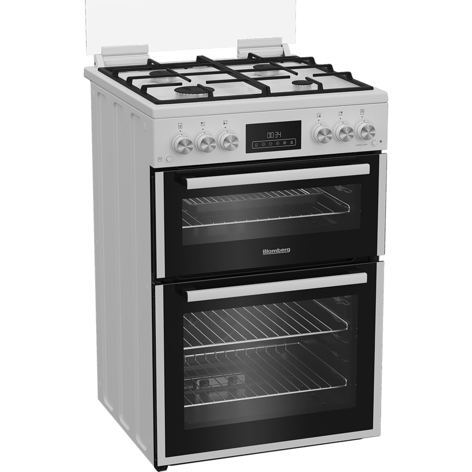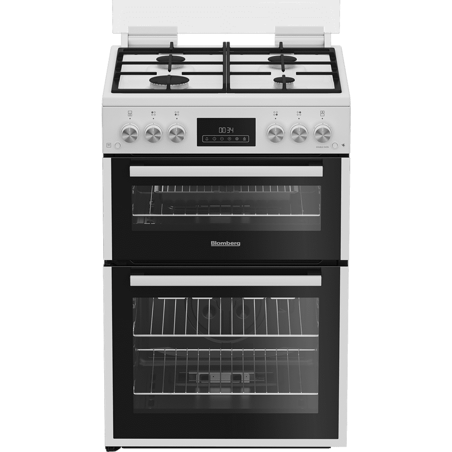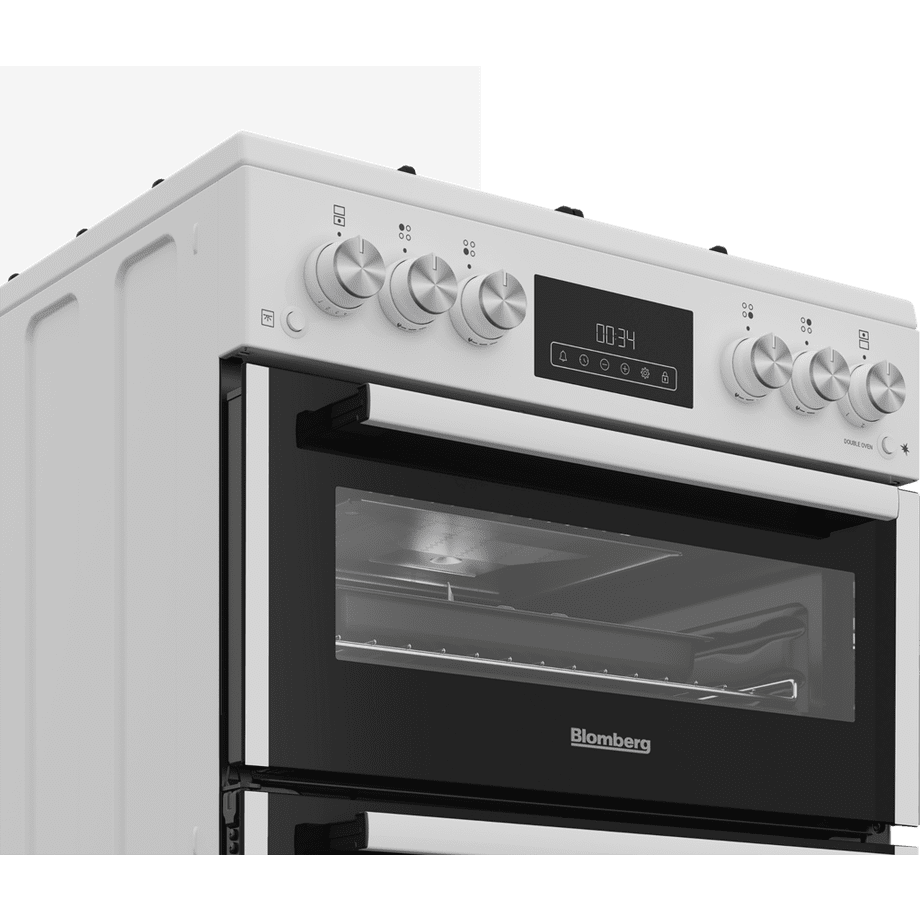 The Blomberg GGRN655W 60cm Double Oven Gas Cooker with Gas Hob in sleek white offers a perfect blend of elegance and functionality, making it an ideal choice for any modern kitchen. This versatile appliance excels at baking, grilling, and frying, allowing you to prepare a variety of meals with ease. The generous 72L main gas oven is designed with multiple cooking options and includes five slots, three wire shelves, and a grill pan set to get you started on your culinary adventures.
