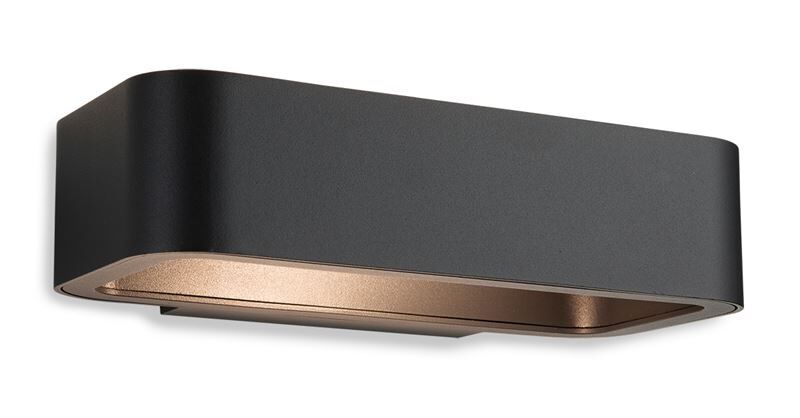 Stylish modern LED outdoor wall light in a graphite finish. Die cast aluminium construction it has an IP54 rating.